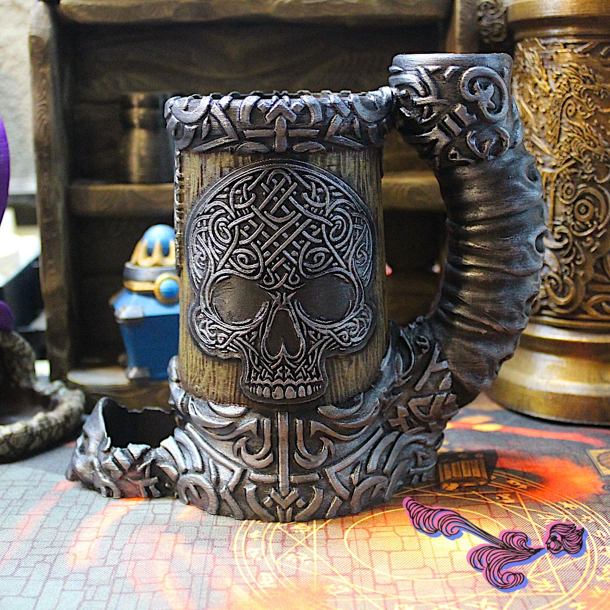 En la taberna del Hobbit Mimosón, para evitar las grescas ocasionadas por los juegos de azar, le encargaron estos elementos al alquimista druida de la aldea, el gran Osul el Timbero, quien dotó de habilidades para los dados a estos poderosos instrumentos para beber. Desde entonces se ha mantenido un ambiente festivo dentro del establecimiento.